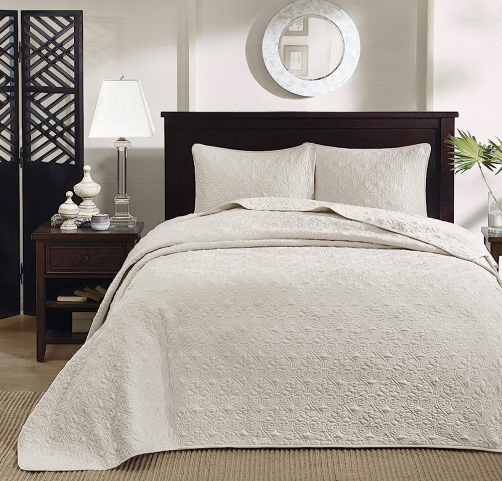 Madison Park Quebec Reversible Bedspread offers a classic stitch pattern that gives a subtle decorative element. perfect as a layering piece or alone.