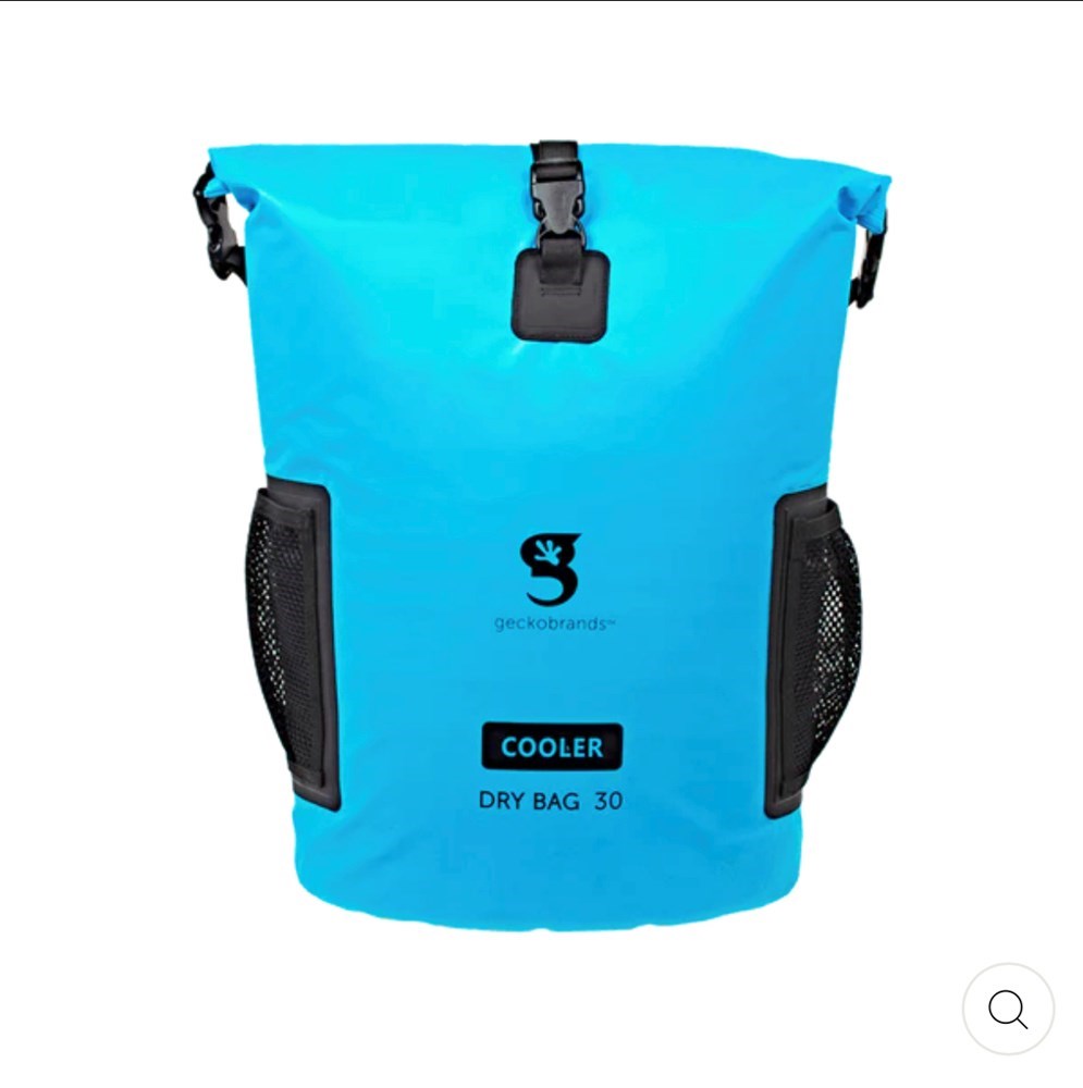 gecko brands waterproof 30L bag cooler - fits 24 cans, 26 slim cans or 18 bottles! Also utilize as a dry or atore wet gear, clothes and towels.